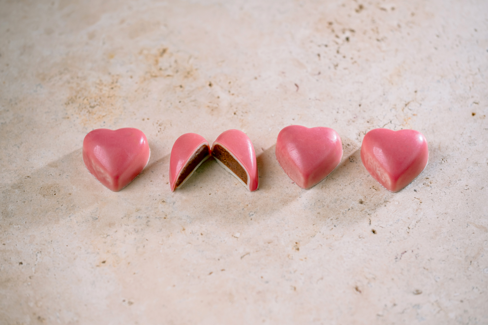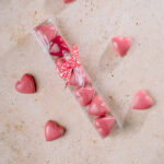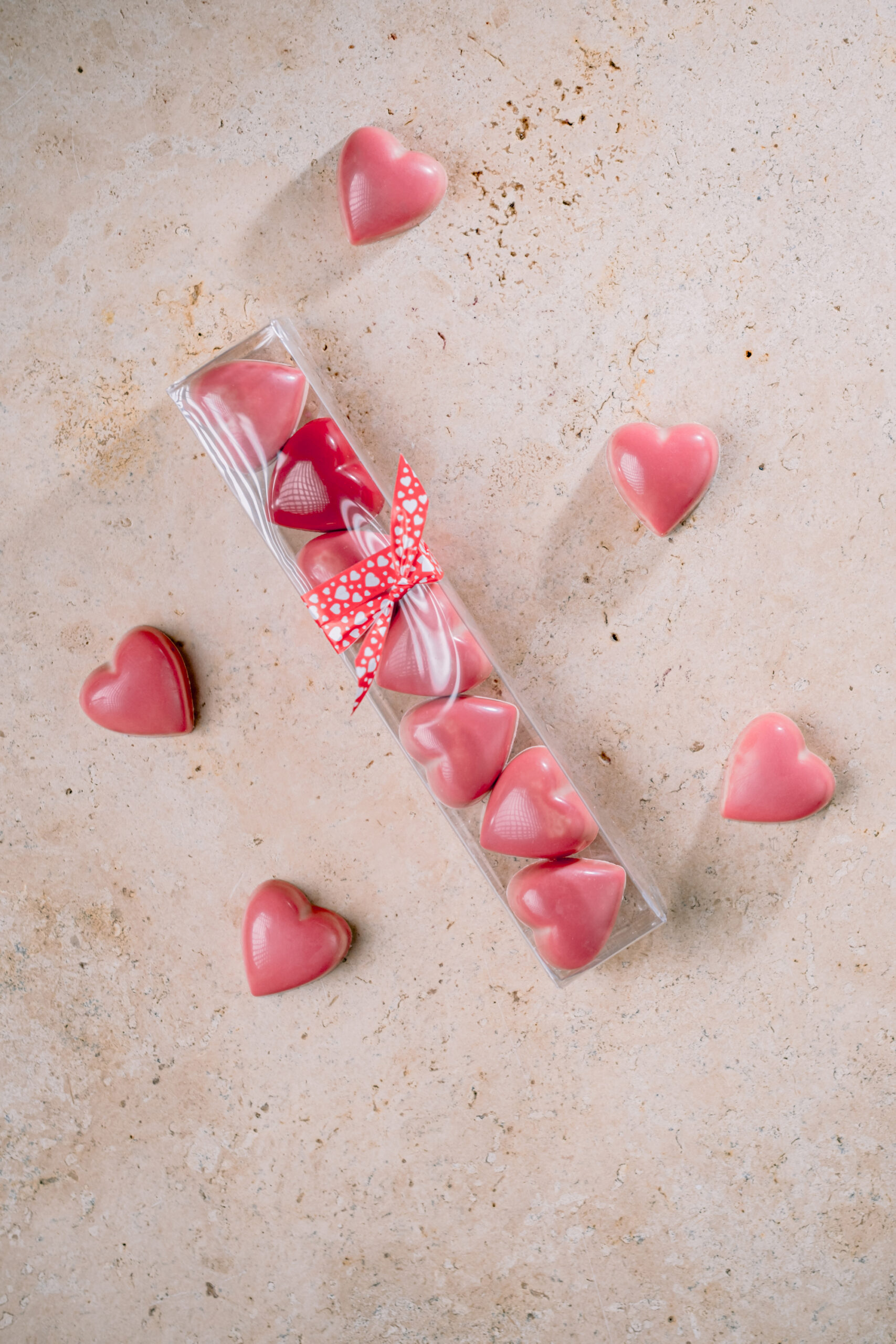 chocolat pur beurre de cacao, pâte de cacao, AMANDES, NOISETTES, beurre de cacao, BEURRE doux, LAIT, sucre, CREME fraîche, pulpes de fruits, lécithine de SOJA et tournesol, vanille gousse, arômes naturels, colorants d’origine végétale. Sans conservateurs.