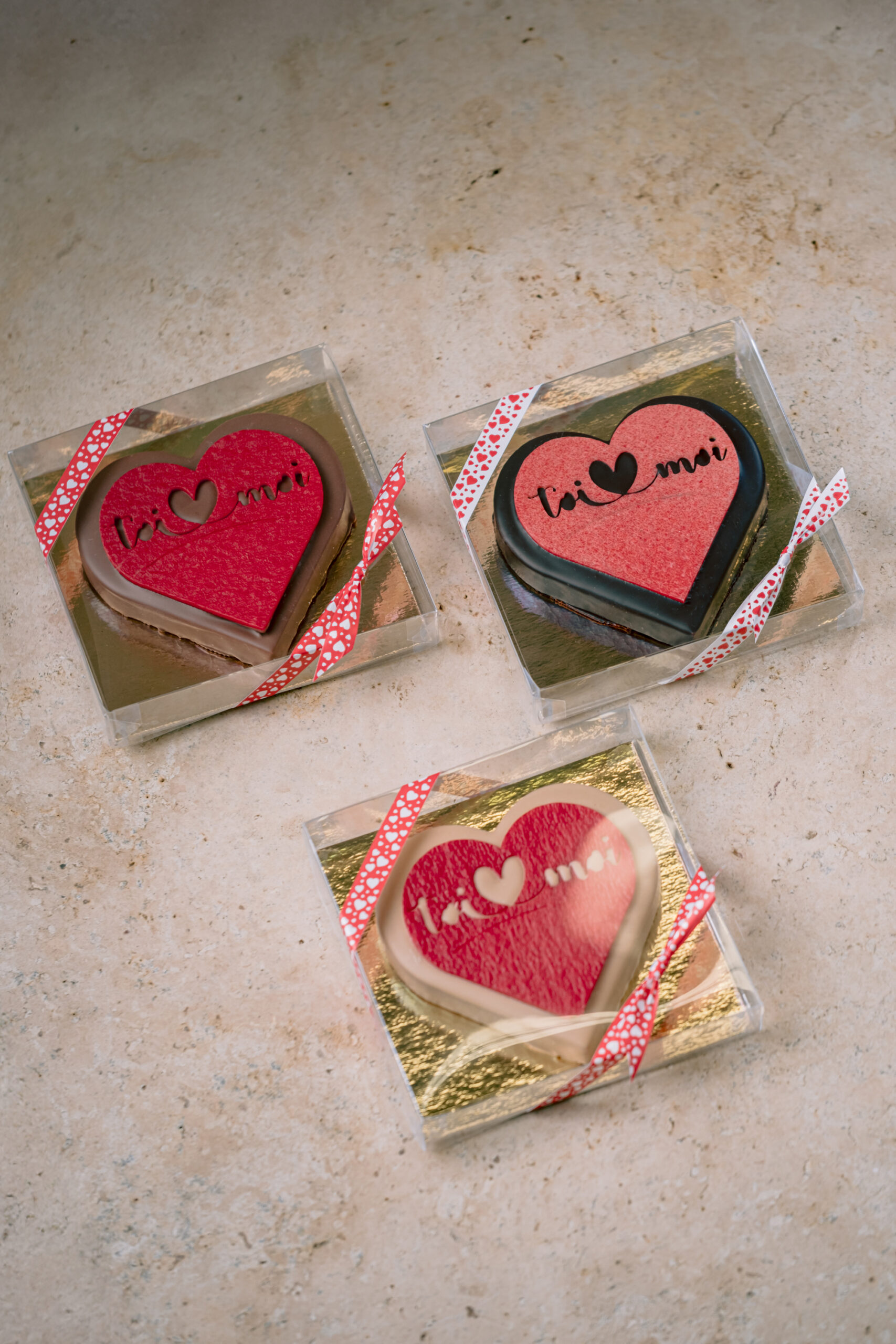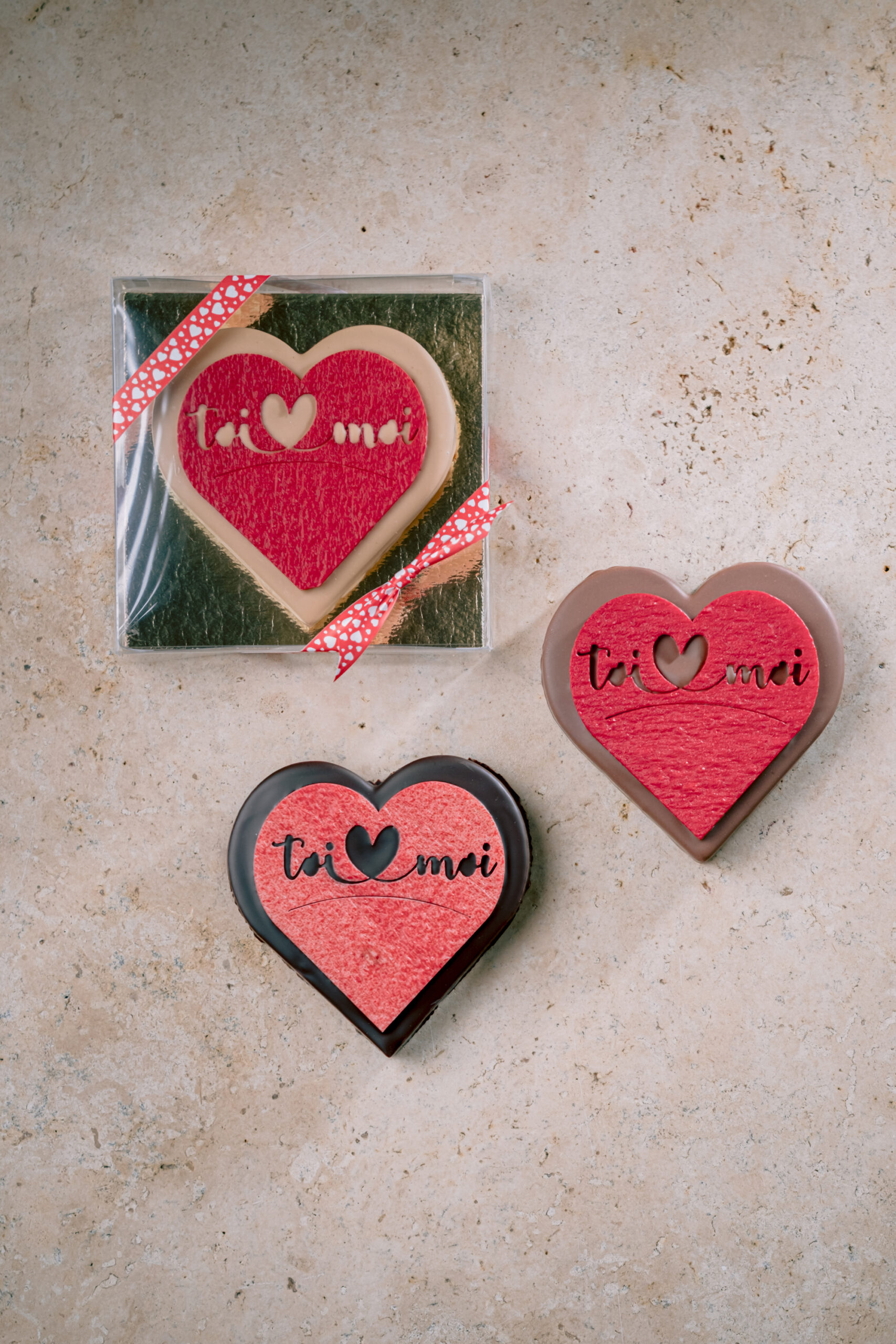 Un seule recette de praliné amandes noisettes effilées, mais trois couleurs de chocolat pour que tous les amoureux puissent choisir leur parfum préférés. Craquant et intensité du praliné, pour un moment entre toi & moi.