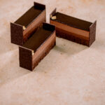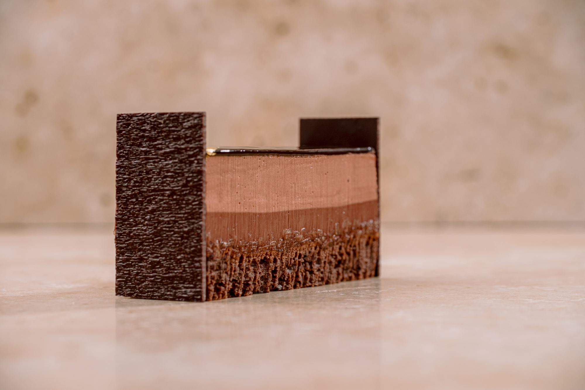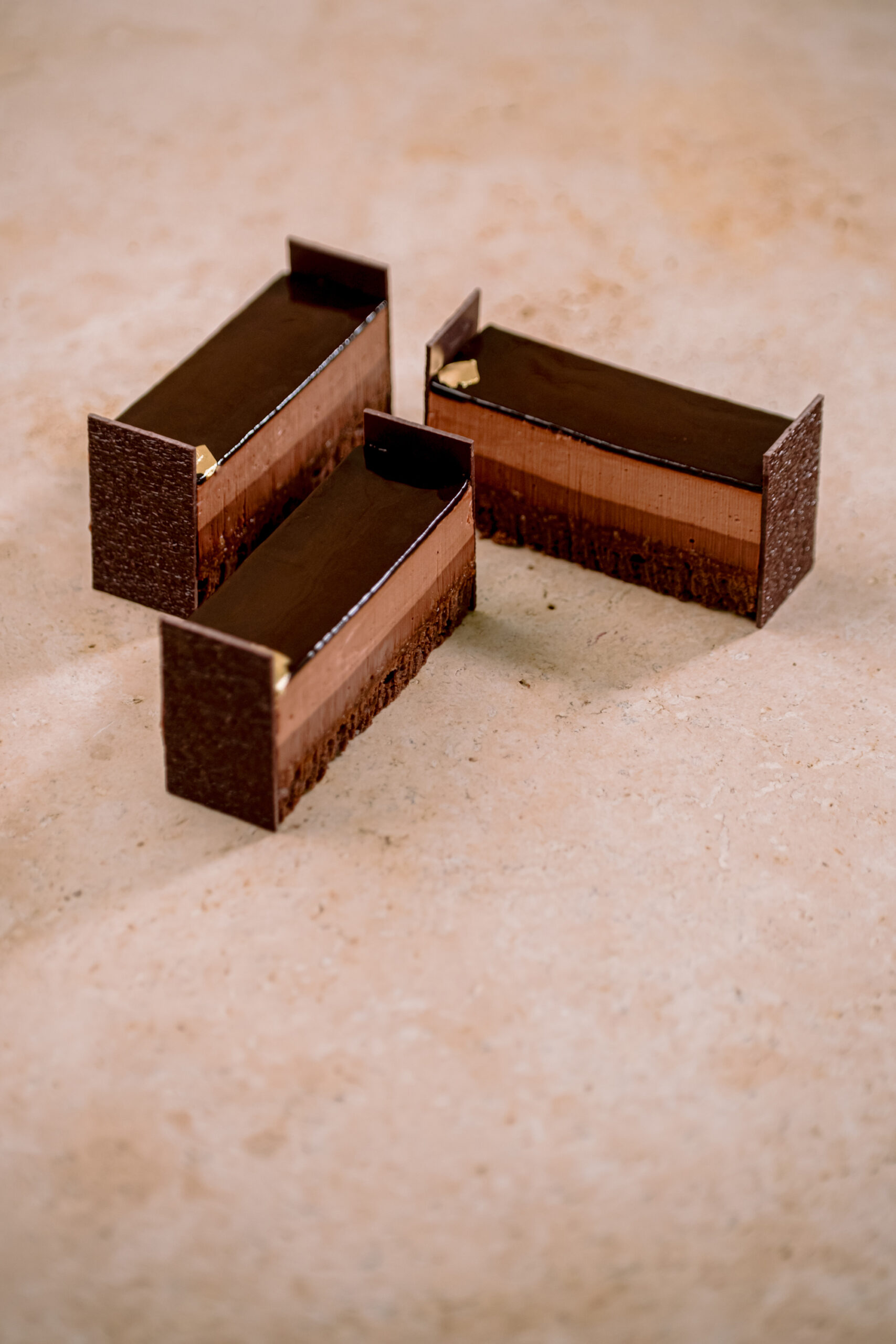 CRÈME liquide stérilisée UHT (Crème (LAIT), stabilisant : carraghénanes),Chocolat Cameroun MB, Jaune d’OEUF liquide pasteurisé (Jaune d’OEUF), Lait 1/2 écrémé Fabre, Sucre, Blanc d’OEUF liquide pasteurisé (Blanc d’OEUF, stabilisants : E412, E415), Noisettes entières Mortarella, Feuilletine call, BEURRE (Crème (LAIT), fermentsLACTIQUES), sucre inverti, eau, Cacao poudre call, Farine saveur pâtisserie, Fécule,AMANDE, Huile pépin raisin, Sirop glucose DE40, Fondant , Gélatine de bœuf.