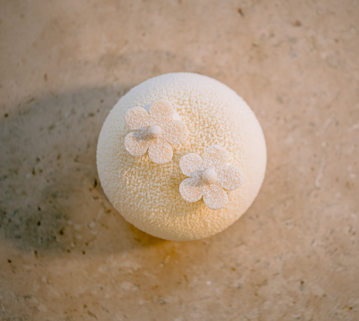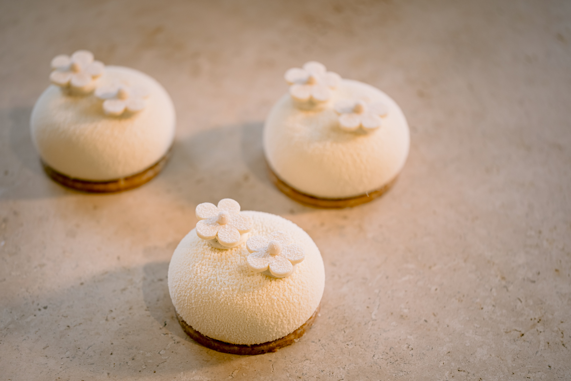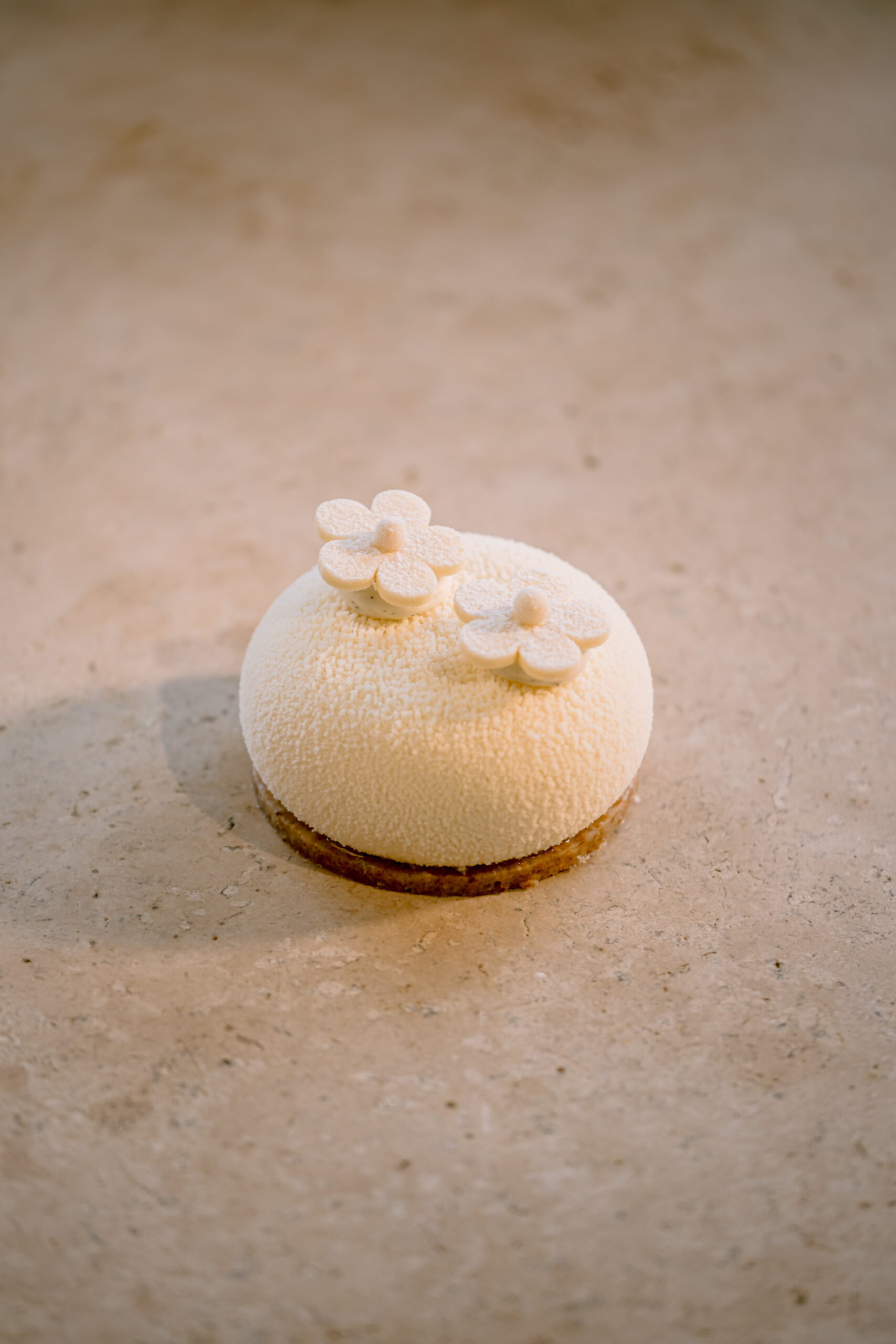 NOISETTES entières, CRÈME liquide stérilisée UHT (stabilisant : carraghénanes),Sucre, Chocolat blanc (Beurre de cacao, LAIT entier en poudre, sucre, émulsifiant : lécithine deSOJA, extrait naturel de vanille), AMANDE, Feuilletine, BEURRE concentré, AMANDE poudreblanche , OEUFS entiers liquides pasteurisés, Jaune d’OEUF liquide pasteurisé, LAIT 1/2 écrémé,Huile pépin raisin, Blanc d’OEUF liquide pasteurisé (stabilisants : E412, E415), Eau, Poudre de lait26% (LAIT), Farine BLÉ, Cacao poudre, Gélatine de bœuf, Sucre inverti, Gousse de vanille.