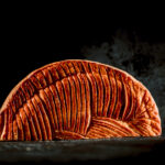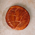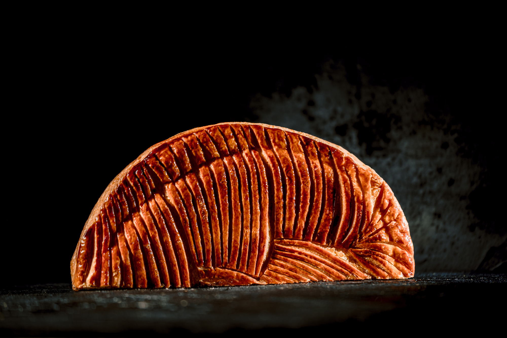Four doux à 80°, laisser 10 minutes pour réchauffer le feuilleté. Laisser refroidir 5 minutes, la couper et la servir. Ne pas la couper avant de la mettre au four sinon ça va la sécher.