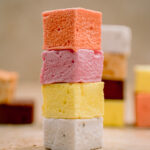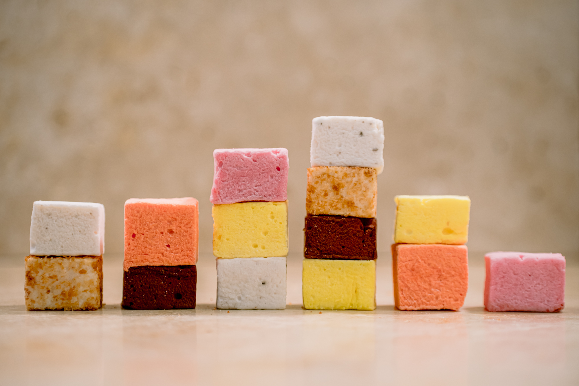 Sucre, sucre inverti, eau, gélatine bovine (hallal), noix de coco râpée, pulpe de mandarine, pâte de cacao, arômes naturels de cédrat, fraise, coco, beurre de cacao, fécules de pommes de terre, amidon de maïs, lécithine de tournesol, colorants E102, E129, E151